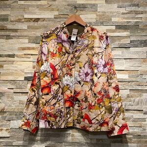 Chico’s Reversible Linen Jacket | 1 M, Fall Floral & Olive Green Capsule Piece