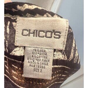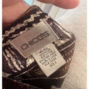 Chico's Size 2 Silk Blend Cardigan Southwest Aztec Print Open Front Kimono