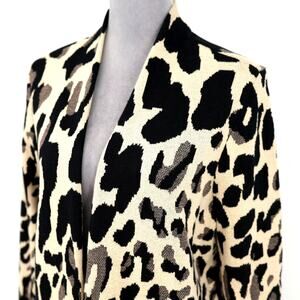 Chicos Sweater 2 Womens Large Beige Black Animal Print Open Cardigan Mob Wife