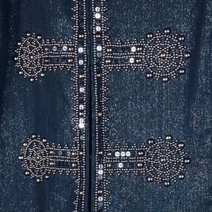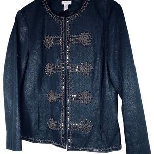 Chicos Sz 2 (Large 12 14) Jean Denim Jacket Coat Embellished Beaded Blue