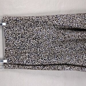 Chico's Tan Multicolored Leopard Print Asymmetrical Waist Pleated Midi Skirt