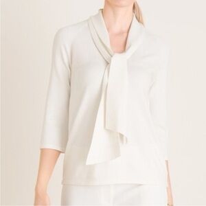 Chico's White Tie-Neck Pullover Sweater Size 2 Large Removable Scarf Cotton Silk