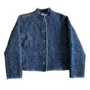 Chicos Womens Sz 2Y2K Blue Quilted Button-Up Embroidered Jacket