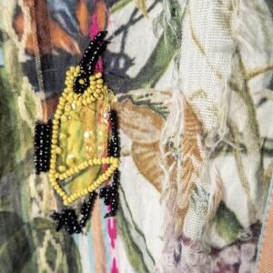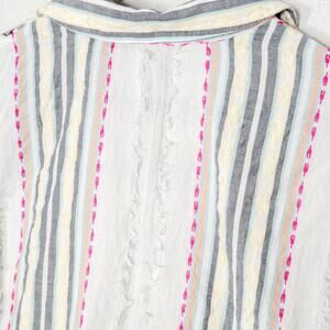 Chico’s Women’s Top Garden Girl Floral Stripe Beaded Embroidery Button Up Size L