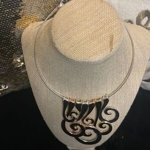 Chicos tri color hammered swirl metal choker/necklace statement