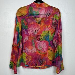 Chico's Silk Vibrant Abstract Print Button Down Shirt Size XL