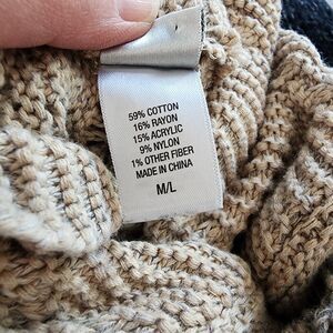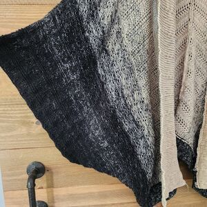 Chico's multi color block sleeve open front cardigan tan black womens size M / L