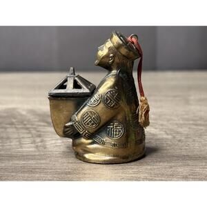 Chinese Man Figurine Incense/ Ashtray/ Inkwell Metal from Japan Vintage