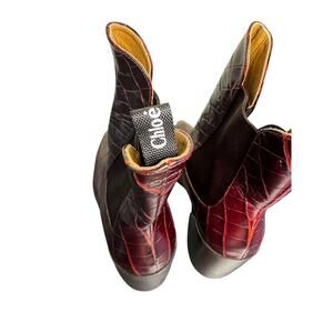 Chloe Wave Croc-Embossed Leather Chelsea Boots Size 40 (US 10) featuring smooth brown leather that sits on an elegant chunky block heel. Featuring elastic side panels and elastic side panels.