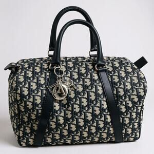 Christian Dior Trotter Boston Bag Dior Baggages Navy Monogram Canvas Handbag