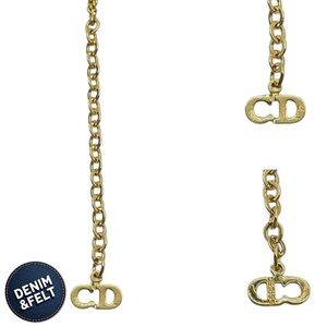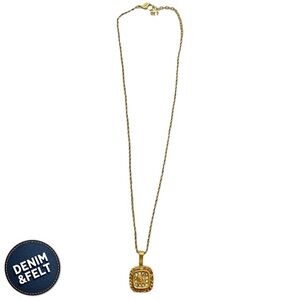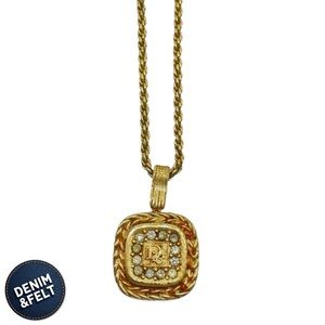 Christian Dior Vintage Logo Plate Rhinestone Gold Plated Pendant Necklace 💛