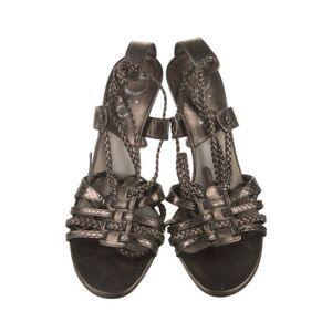 Christian Dior Authentic Leather Silver Gray Metallic High Heel Sandals 6