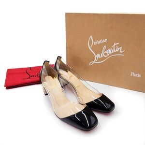 Christian Louboutin Faridaravie 25 Black Patent Leather PVC Gold Block Heels 38