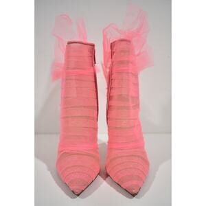 Christian Louboutin Libellibooty 100 Pink Mesh Tulle Ankle Boot Heel Pump 39.5