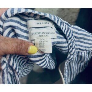 Christian Siriano 100% Linen Women Sleeveless Stripped Blue Adjust Front ties XL