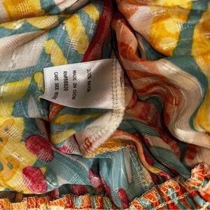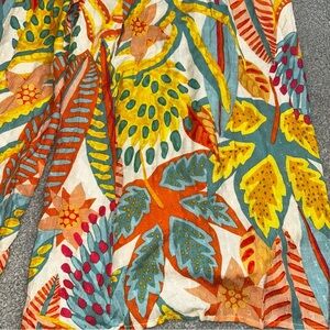 Step into style with this Christian Siriano wide leg pants, showcasing a smocked design and a sophisticated slit. The maxi length and wide-leg silhouette offer a breezy fit, perfect for resort wear. Vibrant yellow and orange tones bring a lively touch to your casual wardrobe.