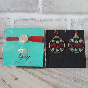 Christmas Bracelet and Ornament Earrings Blingy Sparkles Pierced Rustic Cuff