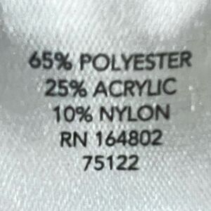 Fabric: 65% Polyester, 25% Acrylic, 10% Nylon