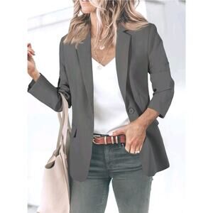 Cicy Bell Blazer Sz M Gray Business Casual One Button Pockets Classic Career New