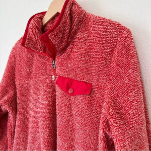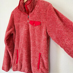 It's time for easy layers like our must-have fleece that's crafted in an inviting coral color with cozy texture. This two-tone 1/4 zip pullover with easy-entry front pockets and logo label offers style, comfort and durability for years to come.