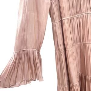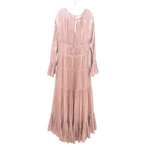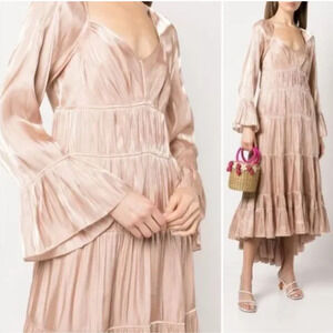Cinq a Sept Nina Satin Tiered V-Neck Long Sleeve Maxi Dress Size 6 Travertine