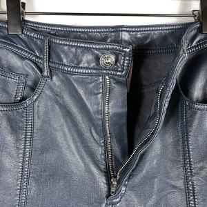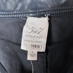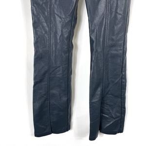 Cinq a Sept Shanis Faux Vegan Leather Pants Blue High Rise Split-Hem Flare Sz 6