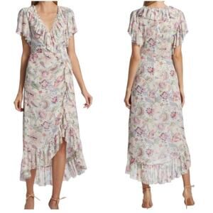 Cinq a Sept Sheilla Floral Ruffle White Midi V Neck Dress 2