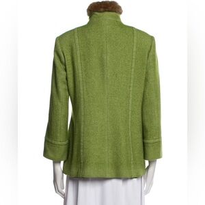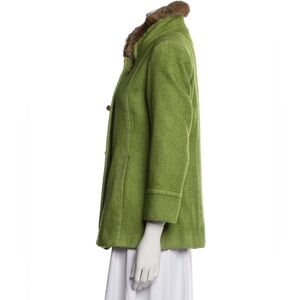 Cinzia Rocca Loro Piana Green Wool Blend Rabbit Fur Collar Toggle Jacket EUC 10