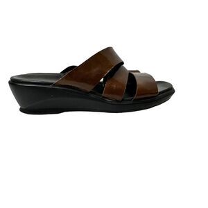 Clark’s Brown Patent Leather Criss Cross Slide Wedges