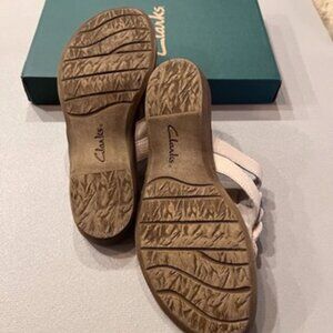 Clarks White Leather 'Dusk Azore' Slip Sandals-7M-NWT