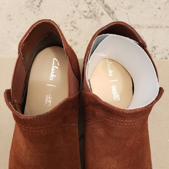 Clarks Womens Demi Beat Tan Suede Pull On Ankle Chelsea Boots Shoes NWT