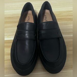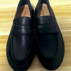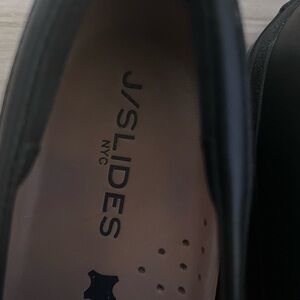 These black loafers feature a smooth leather front and a textured fabric back, offering a sophisticated and versatile look. With a clean, minimalist design and a comfortable flat sole, they are perfect for any occasion. Enjoy the ease of slip-on style without compromising on elegance.