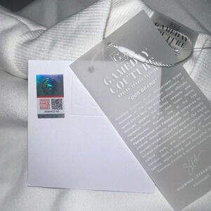 Upgrade your style with this classic white turtleneck sweater, featuring a striking maroon logo. Perfect for a sophisticated look.