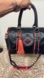 Claudia G Colorful Leather Satchel / Crossbody Bag. Has hanging Tassel. 4 feet on bottom. Interior has 1 large zipper pocket and 2 Slip pockets. Measurements in photos.