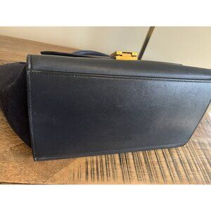 Céline Trapeze Bag In Navy Blue Leather & Suede With Gold-Tone Hardware