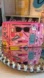 Vibrant pink pouch with playful illustrations. Perfect for cosmetics.