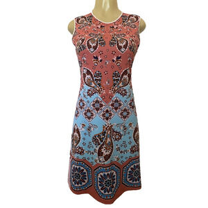 Clover Canyon Dress Sleeveless Paisley Floral Rust Blue Round Neck A Lin…