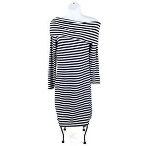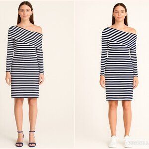 Club Monaco Skarlie Navy White Stripe One Shoulder Long Sleeve Dress Women Small NWT