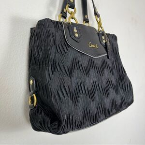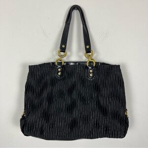 Coach Ashley Carryall Black Pleated Tote Bag Gold Hardware & Patent Leather