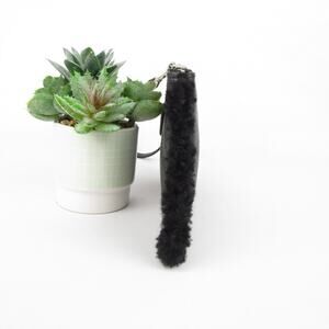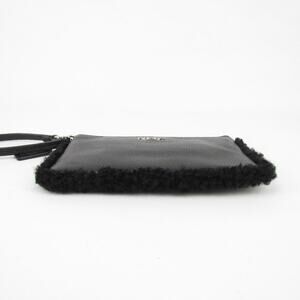 Coach Black Pebbled Leather Wristlet with Shearling Trim