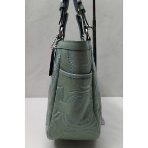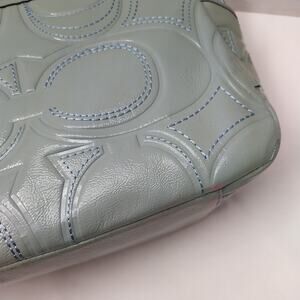 Coach Blue Patent Leather Signature C Embossed Double Handles Pockets Tote Bag