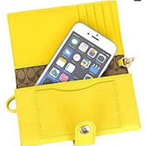 Coach Crossgrain Leather Phone Case Clutch Yellow Wristlet