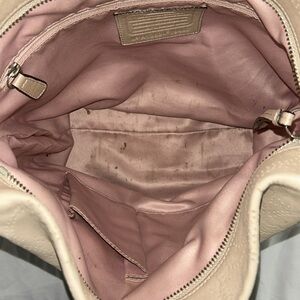 The bag has a flat bottom, detachable hangtag, and adjustable strap with a drop of 22". It also has lined interior pockets, three inside pockets, and one outside pocket for your convenience.