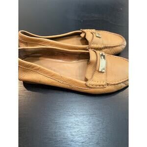 Tan loafers has a few scuffs from wear. Hardware is gold. Size 7.5