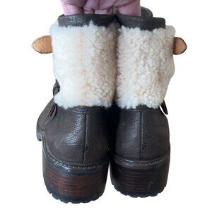 Coach "Gabriella" Winter Chestnut Leather boot lug sole shearling ankle size 7
