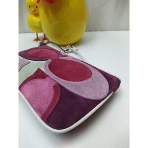 Coach Gallery Optic Signature C Multicolor Suede Leather Trim Wristlet Wallet