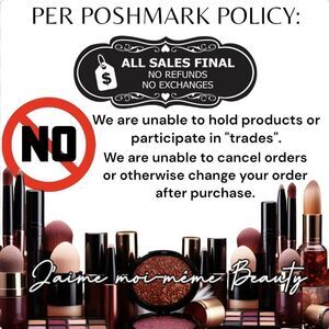 Please note that we are unable to hold products or trade. We are unable to cancel or otherwise change your sale after purchase. Per Poshmark, all sales are final. Therefore we cannot allow for returns or exchanges.