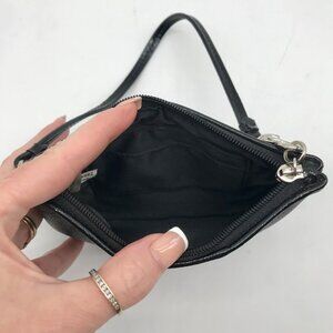 Sporty stripes meet signature style in this sleek Coach gray and black wristlet — the perfect grab-and-go accessory for any occasion. (8158-1LU-10.25)