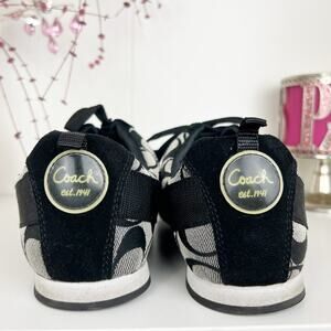 Coach Hadley Monogram Signature Jacquard Suede Sneakers Black White Size 8.5 M