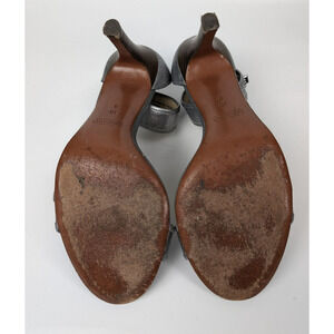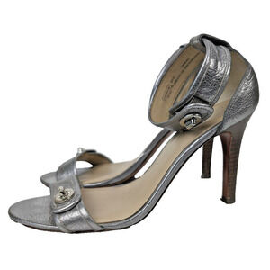 Coach Harleigh Cuba Ankle Strap Sandals Heels Court Leather Metallic Silver 10